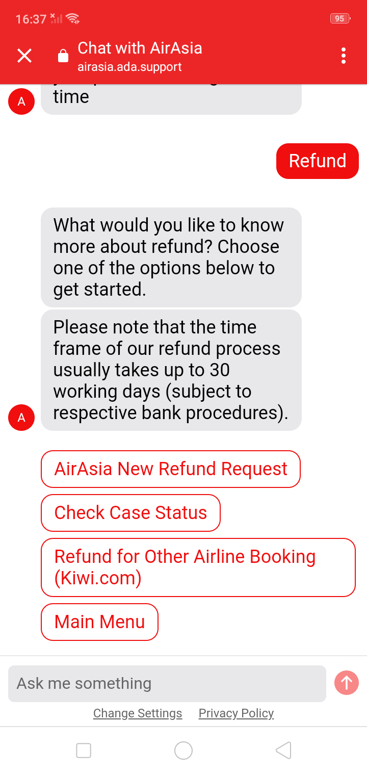 由于Airasia一直没有更新退款事宜,我的姐姐分享用twitter的效率比较好,一个星期内可以得到退款,所以我就在Airasia的twitter私讯他们,大概在两天内他们会回复并索取一些资料,一个星期内就可以得到退款啦.